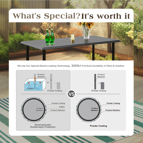 . Outdoor Square Steel Dining Table - Black - Captiva Designs: Rust-Resistant, Water-Resistant, with Umbrella Hole Equinox 59" Stainless Steel Round Dining Table - Teak Top by Barlow Tyrie